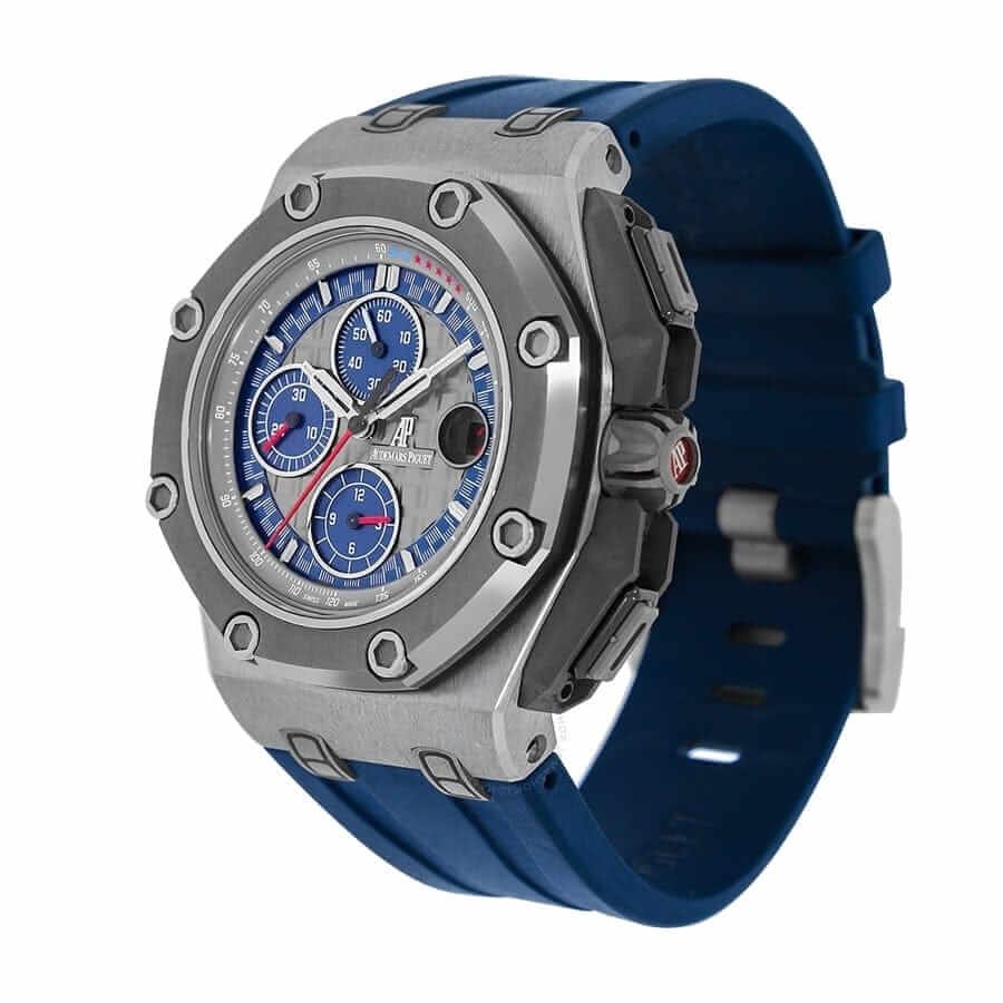 The Audemars Piguet Royal Oak Offshore Replica 26568PM.OO.A021CA.01 is a luxury watch. It features a 904L stainless steel case and bezel. with a transparent color and grey bezel color respectively. The sapphire crystal is 44.00 mm in size and 17.00 mm in thickness. The bracelet is made of rubber. with adjustable links and a 904L stainless steel AP folding clasp. The dial is nicknamed Anthracite and features multi-color indeces. stick hour-markers. and stick hands.