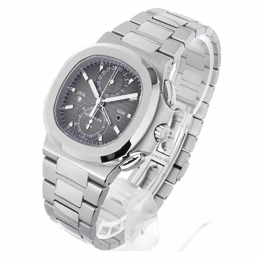 The Patek Philippe Travel Time Steel Replica is a high quality watch from the Nautilus family. It features an automatic movement with a CH 28-520 C FUS caliber and a power reserve of 60 hours. The case is made of 904L stainless steel and has a thickness of 12.53 mm and a size of 40.50 mm. The bracelet is also made of 904L stainless steel and is adjustable for all sizes. The dial is black with stick indices and Patek Philippe hour-markers. The hands are made of stainless steel and are stick-shaped.