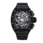 The Richard Mille RM-011 Black Phantom Carbon Fiber Skeleton Dial Replica is a high quality watch. It features an automatic movement with a RMAC1 caliber and a power reserve of 60 hours. The precision of the watch is within COSC certification limits. with a sweep motion second hand. The case is made of 904L stainless steel and is black and skeleton in color. The bezel is also made of 904L stainless steel and is black and skeleton in color. with a sapphire crystal. The bracelet is made of rubber and is adjustable for all sizes. with a titanium double-fold clasp in black. The dial is skeleton in color. with Arabic numerals and 904L stainless steel stick hour markers and hands. The watch is water-resistant and comes with a full 2 year international warranty.