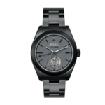 Comfort and versatility are paramount with this timepiece. featuring a 904L stainless steel bracelet with an adjustable link to accommodate all wrist sizes and a secure folding clasp. The dial. in an alluring shade of grey. features stick indices and ceramic hour markers that not only enhance readability but add a touch of modernity. The hands. matching the superior 904L stainless steel. are designed in a classic stick style. epitomizing refined luxury.